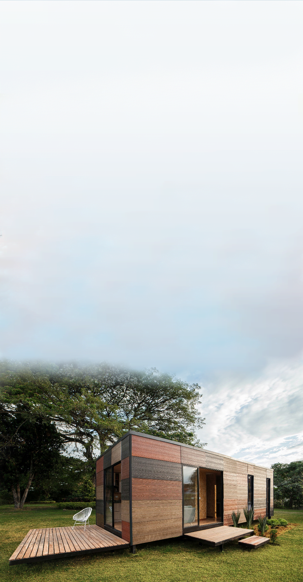 Благодаря нашей особой технологии, дом не нуждается в фундаменте. Вы сможете установить его в любом месте – на берегу реки, в лесу, в горах