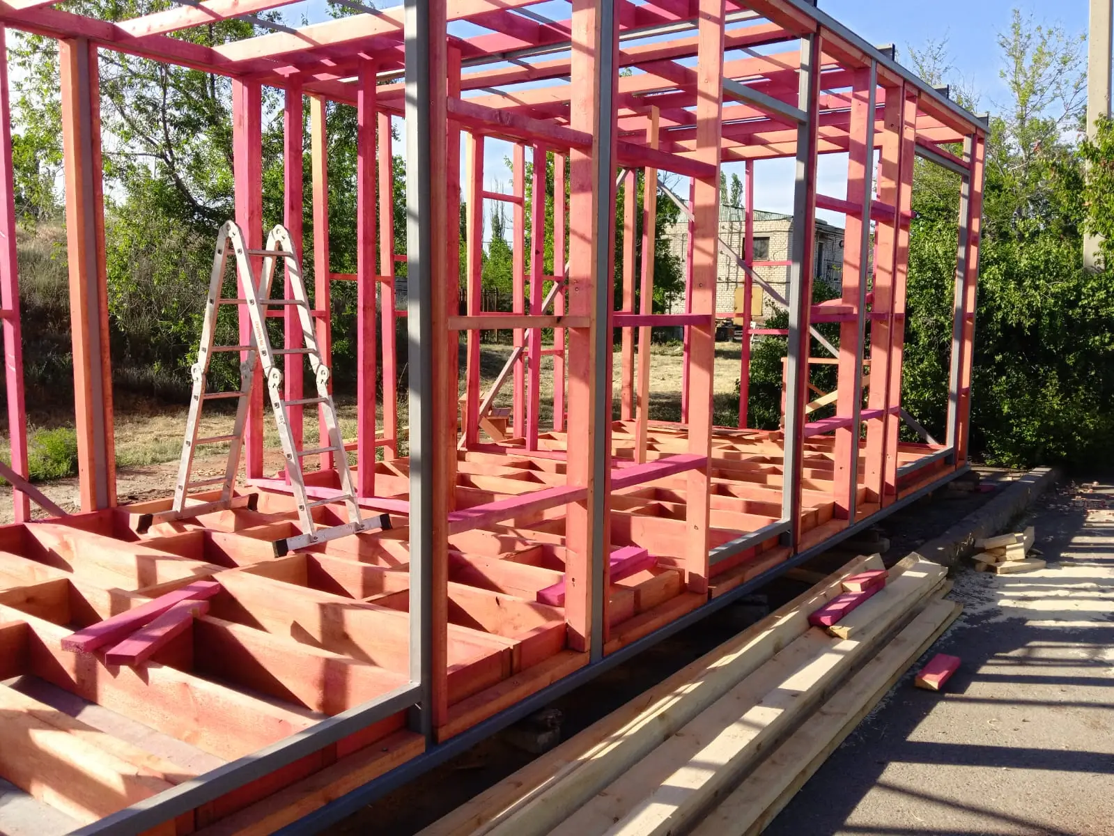• Деревянный каркаса - доска сухая, строганая, 45х150 мм, Влажность - 10-18%. Обработка огнебиозащитой.
